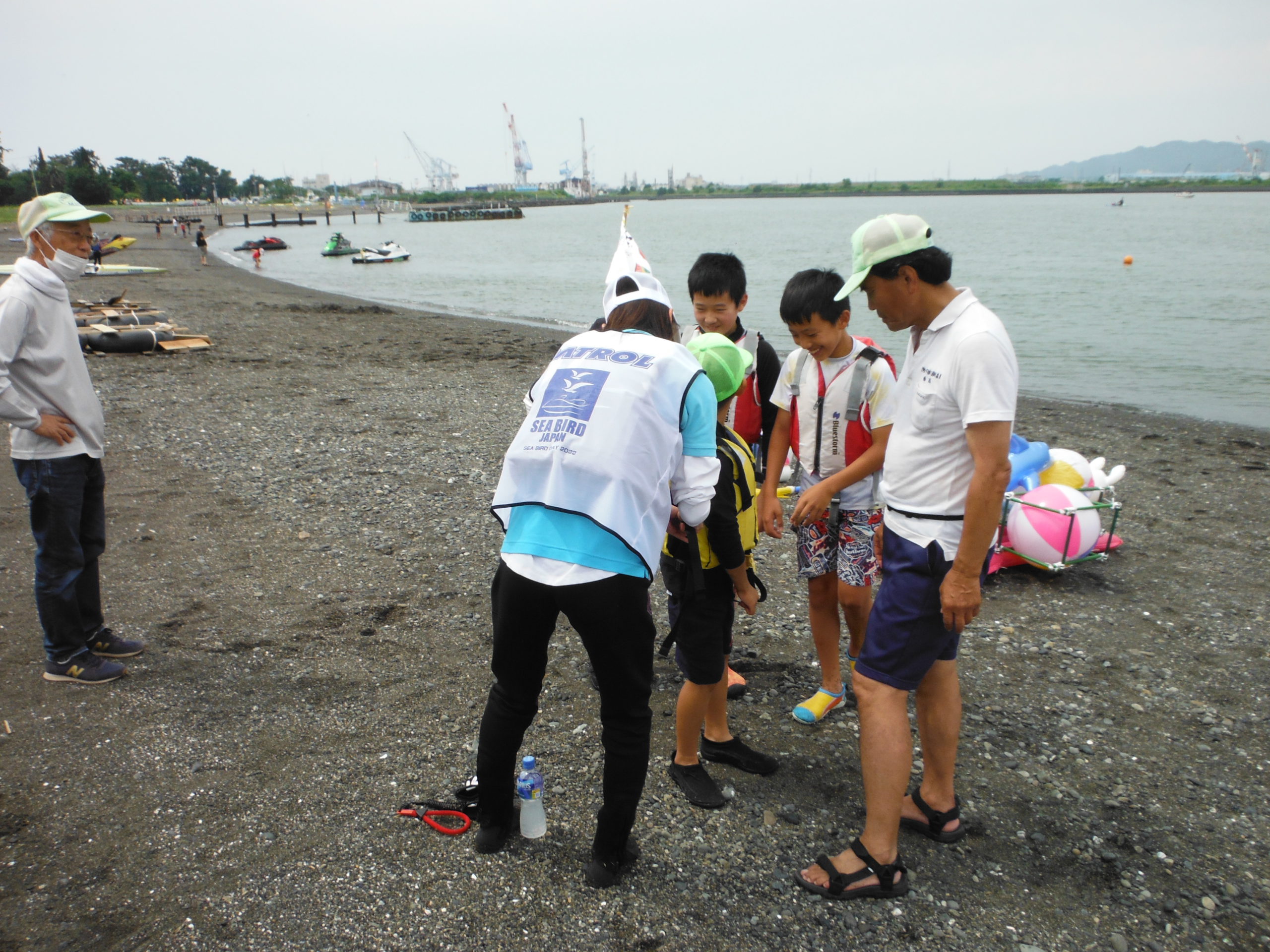 2023年06月22日 シーバード三保 いかだ祭り運営サポート レポートシーバード三保 6月18日(日)清水区三保内浜海水浴場で3年ぶりとなる「少年いかだ祭り」が行われました。コロナ過が明け、子供達の顔も楽しそうで皆頑張っていました。シーバード三保では、海上警備と陸上に置いてはライフジャケットの正しい着方などサポートしました。